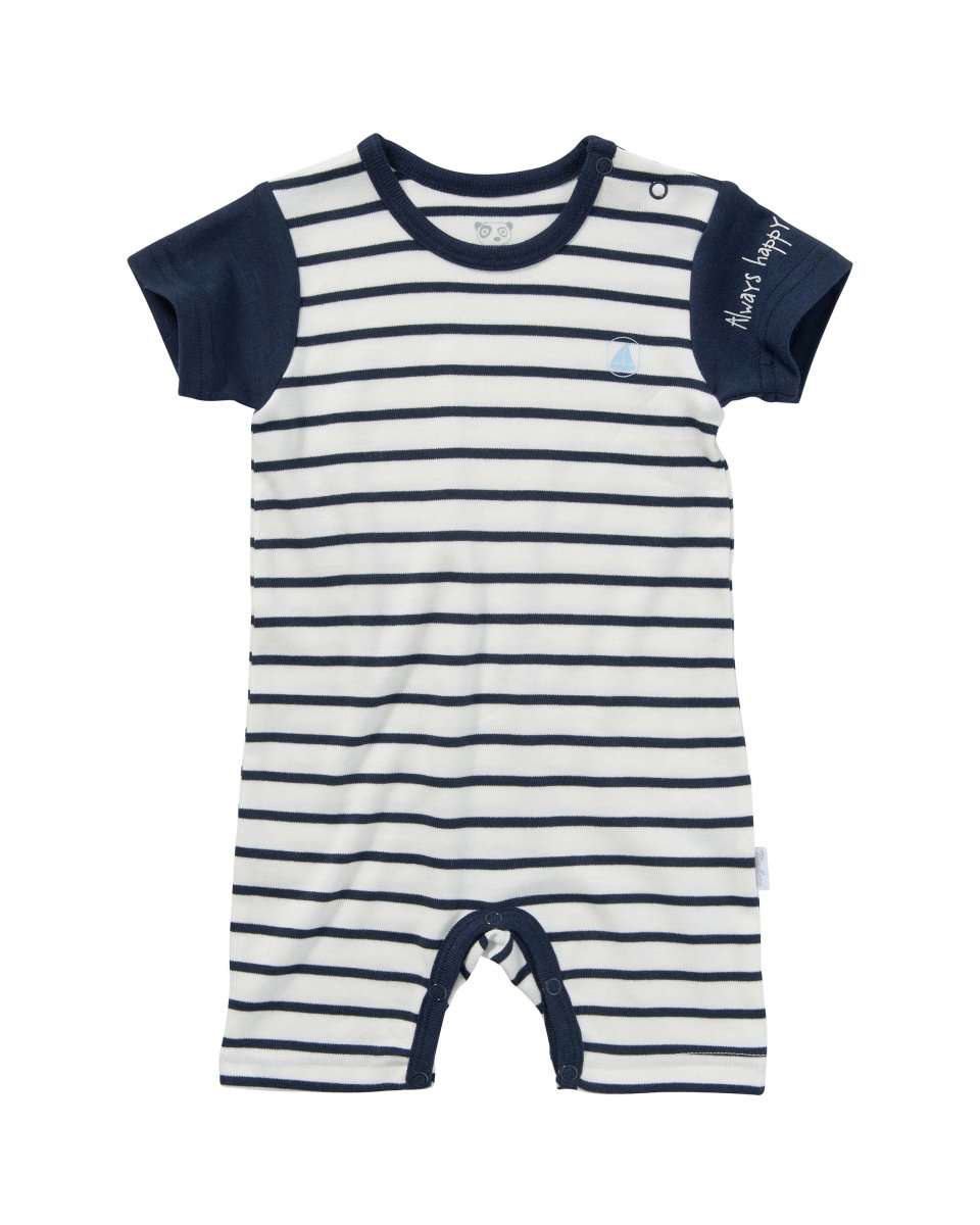 Baby Romper i Bambu, Off-white/Mörkblå