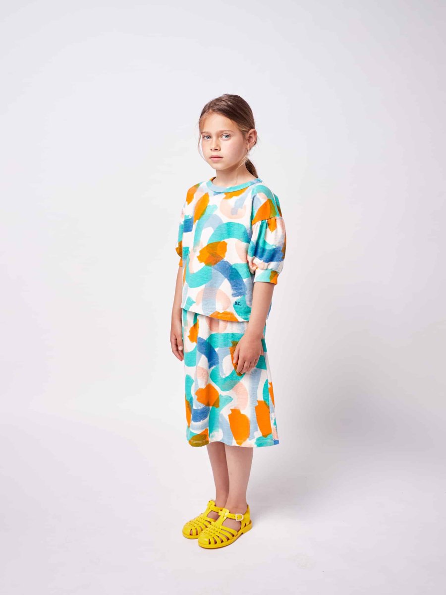 Flerfärgad kortärmad t-shirt, från Bobo Choses SS22-kollektion I’m a Poet. Tröjan har en rund halsringning och designad med puffärmar.