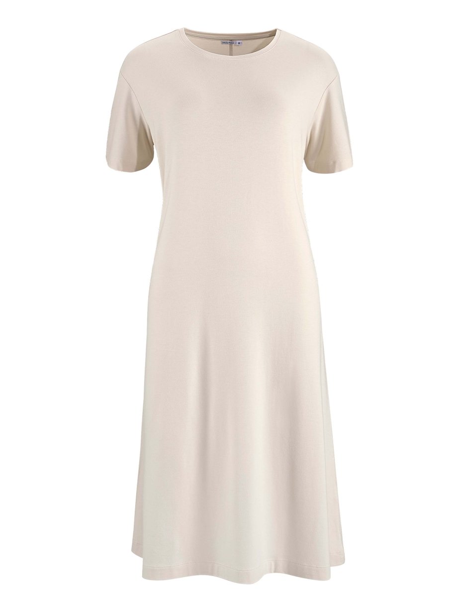 Klänning i bambu med kort ärm. Lyxigt mjuk och följsam.