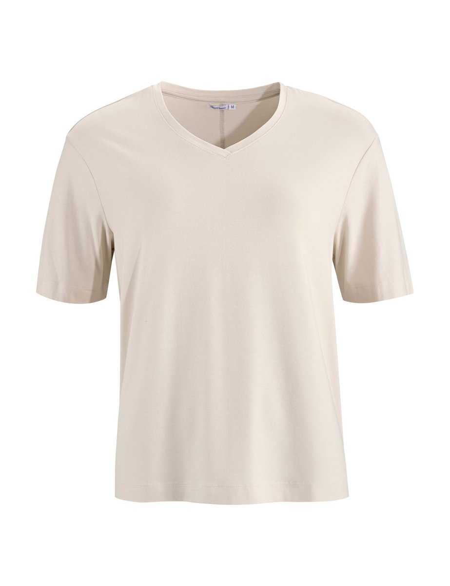 V-ringad damtopp av bambu för högsta komfort, som håller huden sval och verkar fuktighetsreglerande.