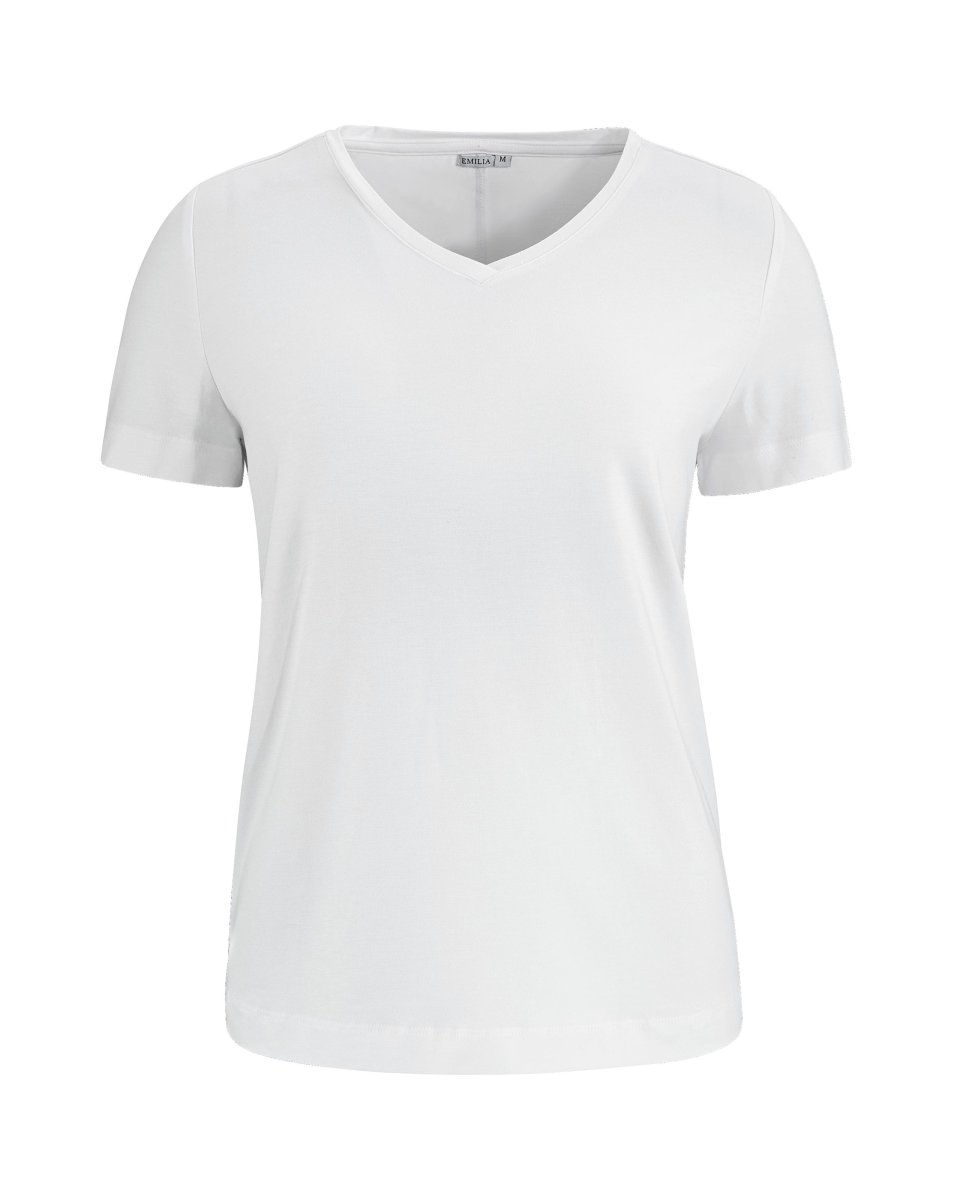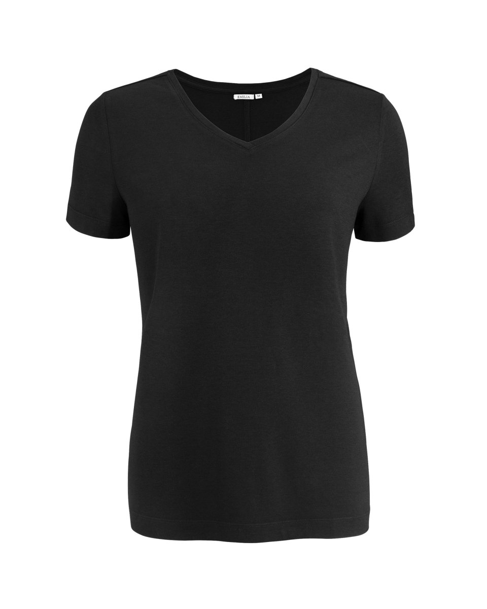 V-ringad damtopp av bambu för högsta komfort, som håller huden sval och verkar fuktighetsreglerande. Miljövänligt naturmaterial som odlas helt organiskt, utan bekämpningsmedel.